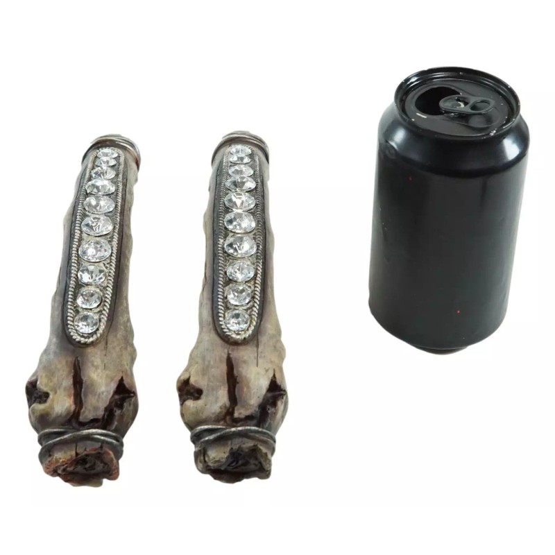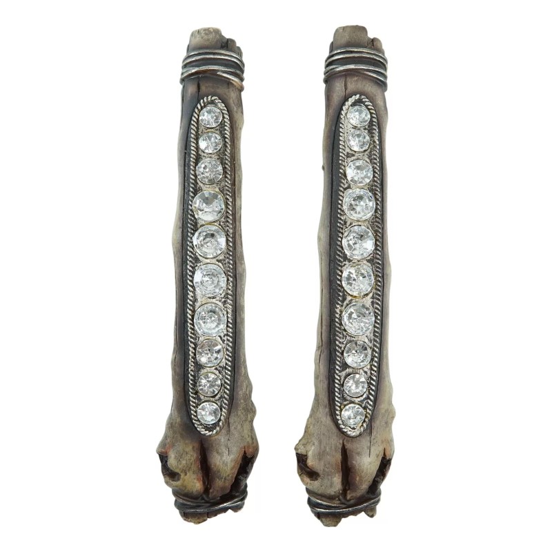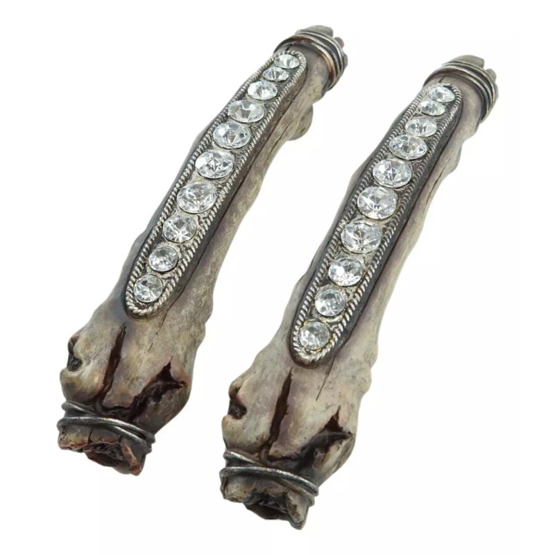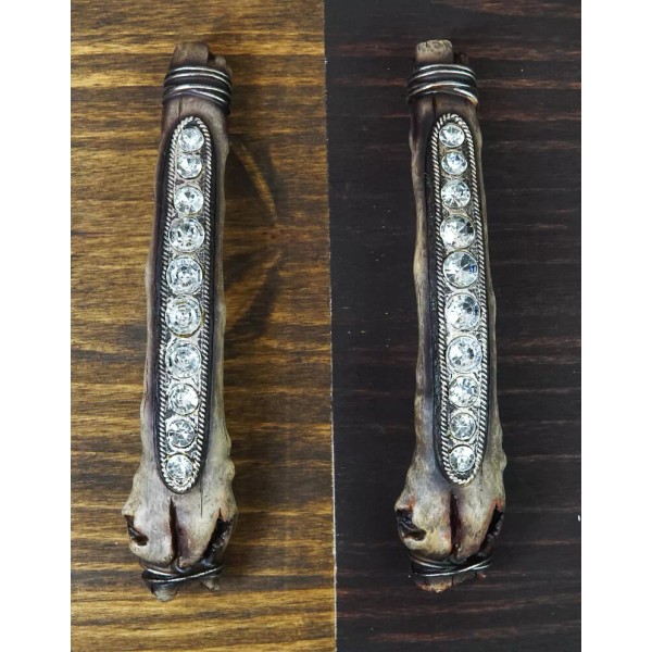 • Bring a rustic western country detail to your cabinetry/furniture with these figural polyresin faux distressed wood pulls set on metal hardware. Crystals are aligned across the top of the door pull to add a Wow Bling factor to your furniture. Screws for installation included.