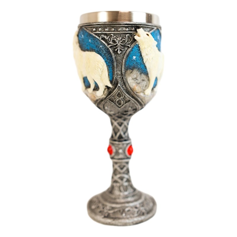 Ebros Gift Howling White Wolf In Starry Night Wine Chalice Goblet With Celtic Knotwork 7oz