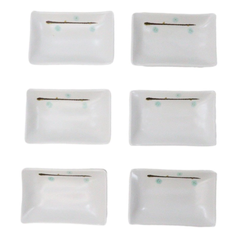 Ebros Gift Modern Yukino Hana Snow Flowers Melamine Dinnerware Serveware Kitchenware Set Japanese Chinese Restaurant Supply (Pack Of 6 Rectangular Condiment Sauce Dishes 2oz)
