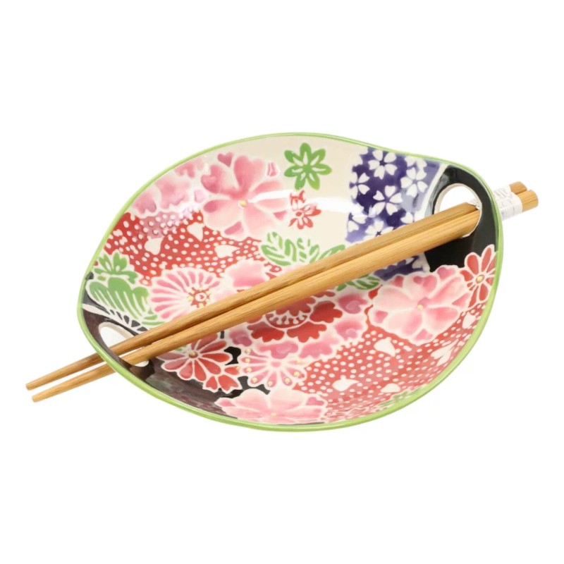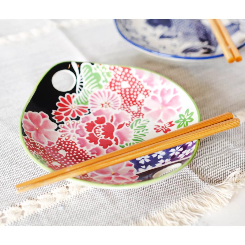 • This Colorful Designer Appetizer Coupe Plate/Flat Bowl With Chopsticks Set is made of ceramic and bamboo. Our traditionally crafted pottery are made of the highest quality ceramic available and fired at a high temperature to maximize the strength of the ceramic, making them superior to other ceramics in the market. Our pottery are more resistant to cracks, stains, and scratches. Our ceramic is food safe and contain no lead or cadmium.