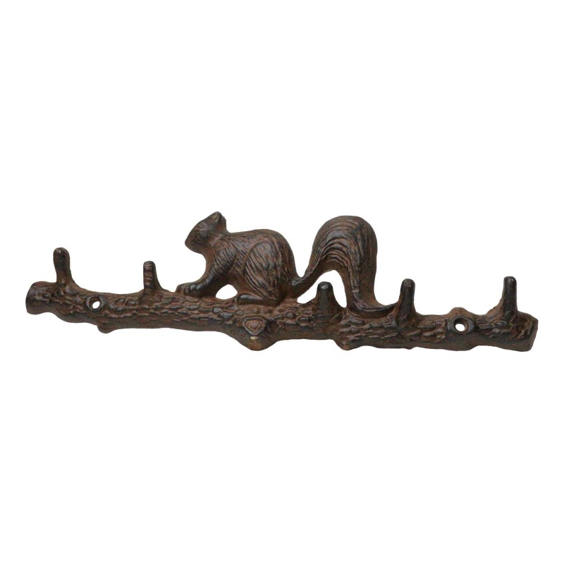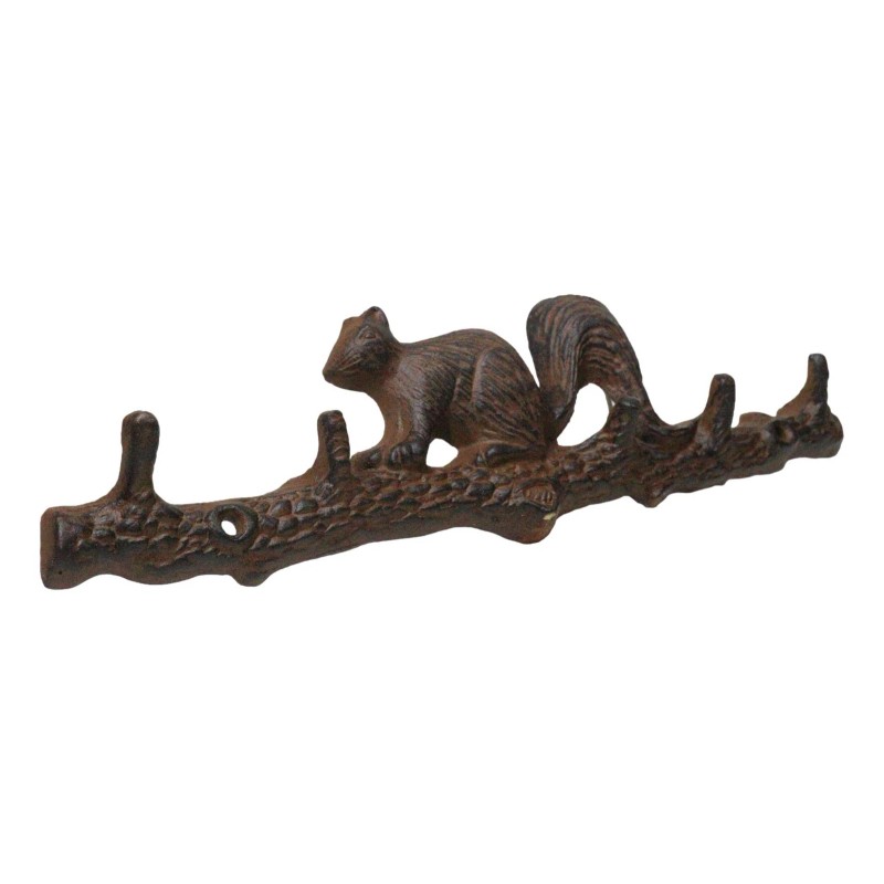 • Bring a touch of nature into your home with the Rustic Cast Iron Playful Squirrel Perching on Tree Branch 4-Peg Wall Hooks Sculpture. Featuring a whimsical squirrel perched on a sturdy tree branch, this functional wall hook offers a charming and rustic way to organize your space. Crafted from durable cast iron, it provides a sturdy solution for hanging coats, bags, keys, or accessories while adding character to any room. Perfect for entryways, mudrooms, or kitchens, this delightful piece combines playful design with everyday utility.