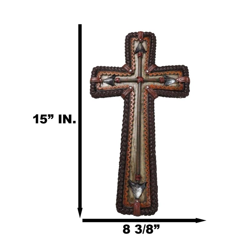 - Introducing the Western Double Edged Arrows with Faux Woven Wicker Borders Wall Cross, a unique and striking addition to your home decor. This distinctive wall cross features bold double-edged arrows, symbolizing direction and strength, intricately designed with faux woven wicker borders that add a rustic, handcrafted charm. Perfect for adding a touch of Western flair to any room, this cross combines rugged aesthetics with spiritual significance.