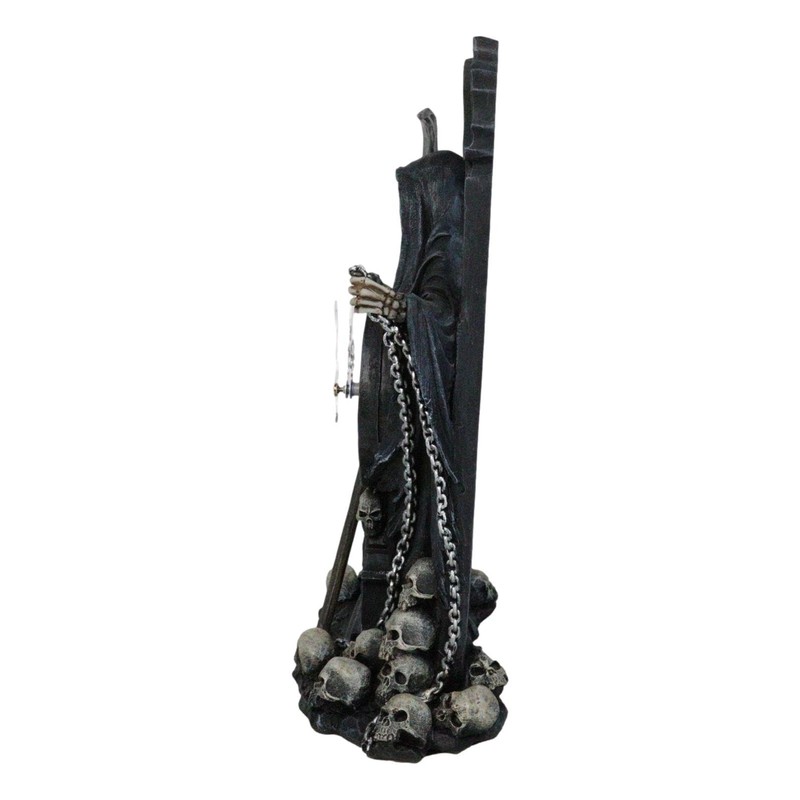 - Embrace the ominous allure of our Black Death Grim Reaper Holding Scythe "Time Waits for No Man" Table Clock Figurine. This intricately crafted piece captures the essence of mortality and the passage of time, featuring a grim reaper with a scythe as a table clock. The dark and detailed design adds a touch of macabre elegance to your space. Perfect for collectors of gothic and morbid aesthetics, this figurine serves as a haunting reminder of the inevitability of time.