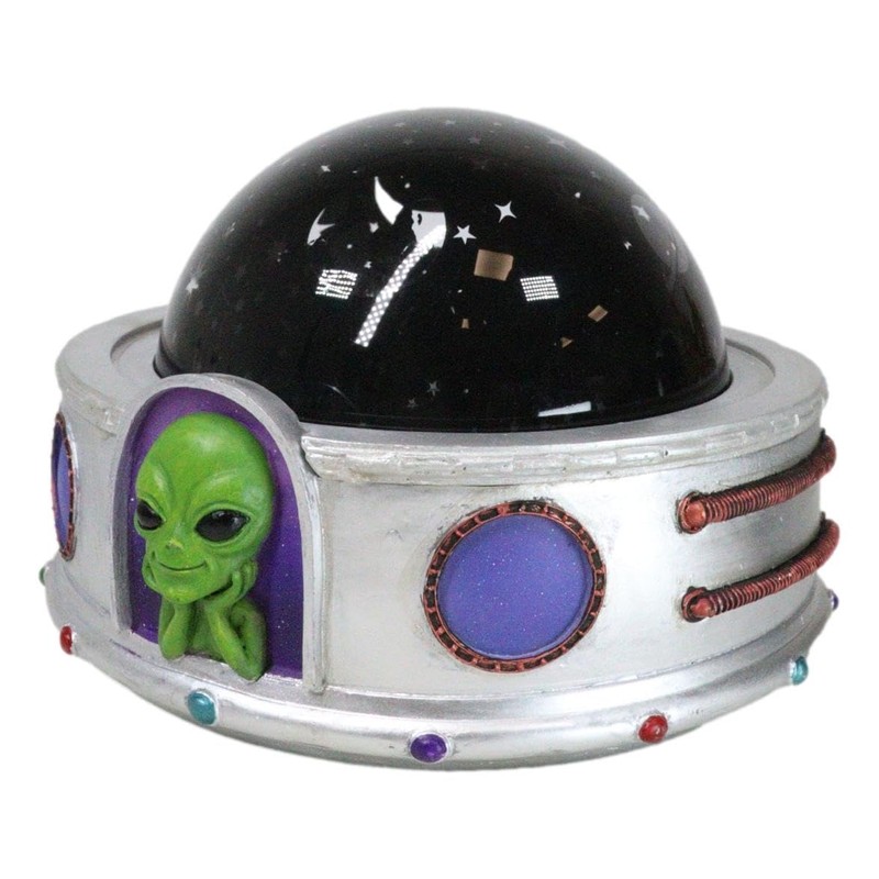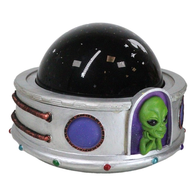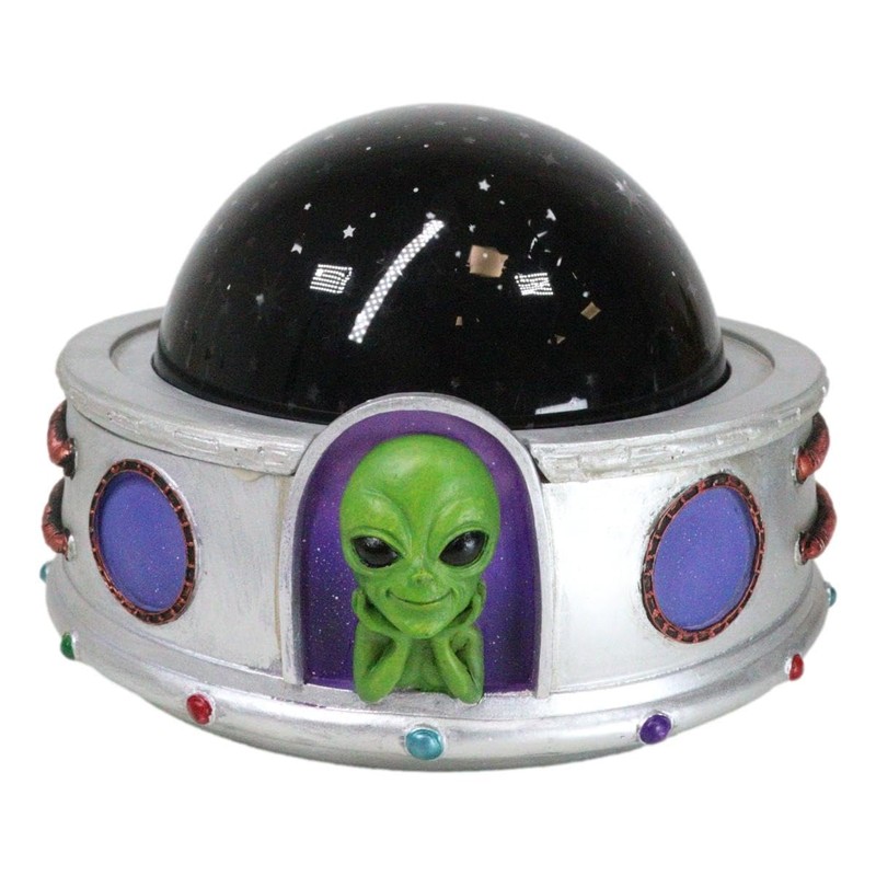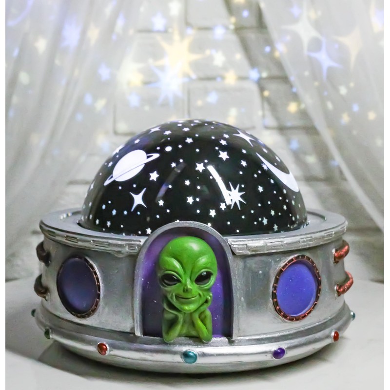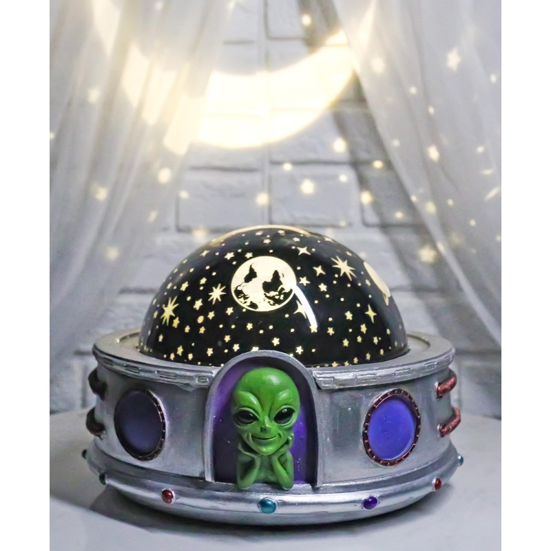 Ebros Gift UFO Outer Space Celestial Moon and Stars Extra Terrestrial Green Roswell Alien Projector Night Light Figurine 8.25" L