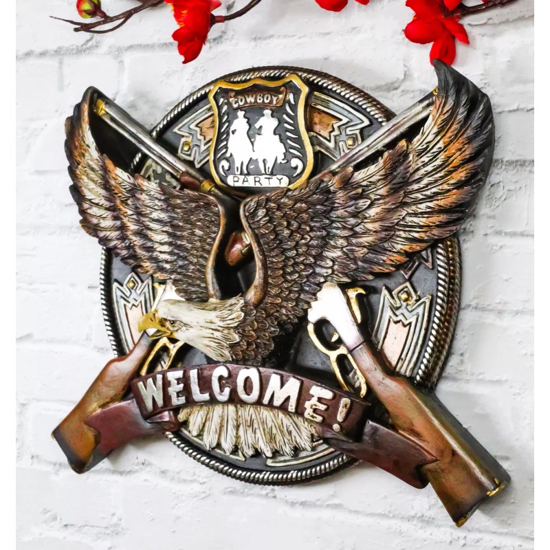 Ebros Gift Western Bald Eagle With 2 Rifle Shotguns Cowboy Party Welcome Wall Decor Plaque
