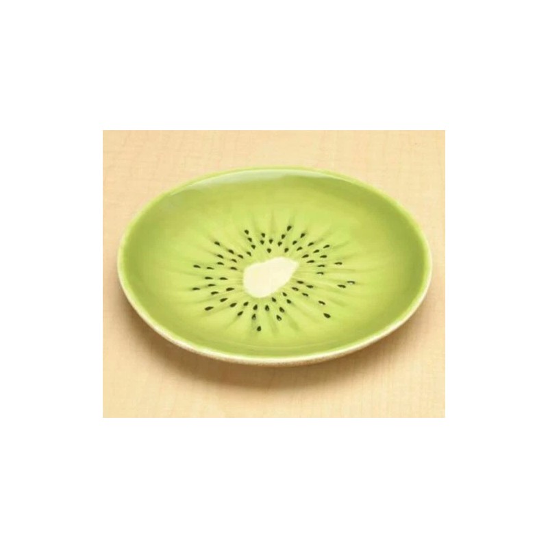 • Here is a fresh and fun kitchen dish dinner plate shaped and colored like the one and only kiwifruit! It is the perfect plate for an exotic presentation of your fruits, salads, appetizers, lunch/dinner entrees and more!