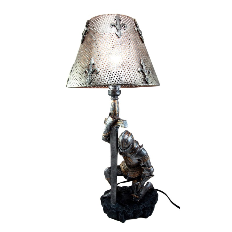 - This Detailed Kneeling Knight Table Lamp is made of polyresin, hand painted and polished individually.