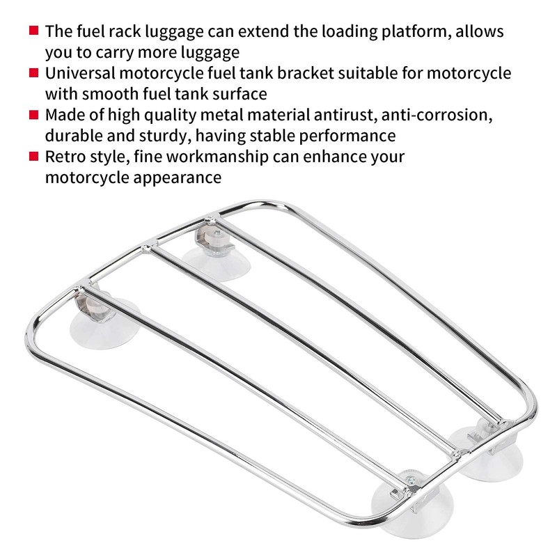 - Universal: the pannier rack luggage can expand the loading area and allows you to carry more luggage. Universal motorcycle fuel tank mount, suitable for motorcycles with smooth fuel tank surface.