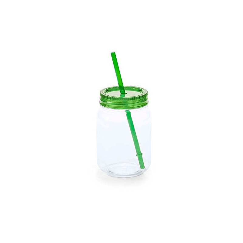 eBuyGB 600 ml Plastic Multi Colour Mason Jam Cocktail Drinking Jar with Resuable Straw-BP Free Party Tumbler, x 2, BPA, Green, Pack of 2