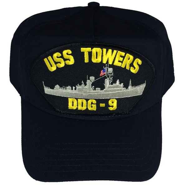 - USS TOWERS DDG-9 Hat - Adjustable Size with Velcro, NAVY BLUE Golf Style