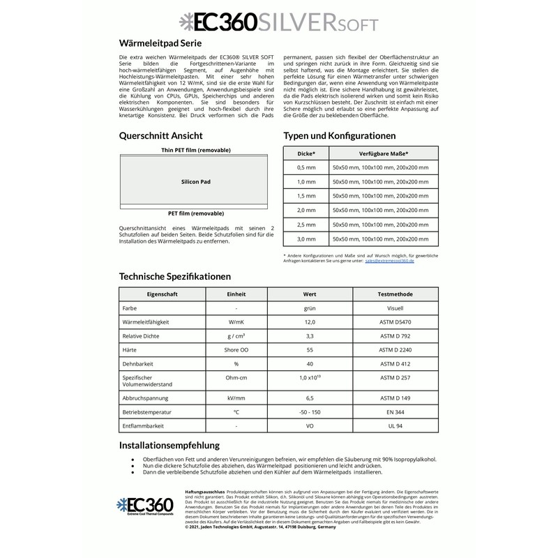 - High heat conductivity: EC360 Silver Soft is the advanced version of high-performance thermal pads, with 12 W/mK they conduct heat 420 x better than air.