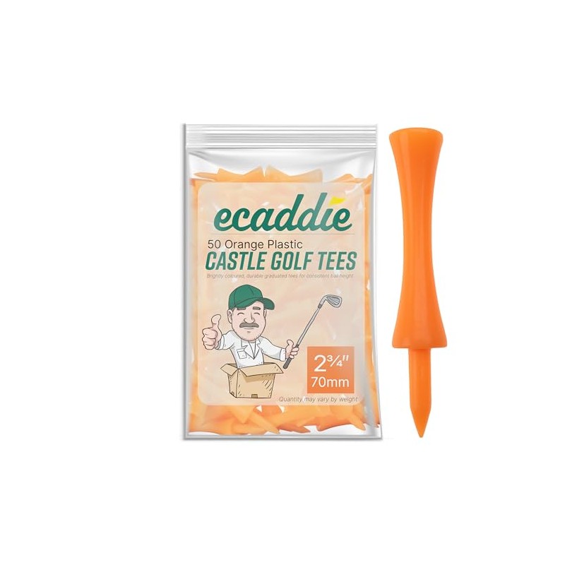 ECADDIE Orange 70mm Plastic Castle Golf Tees (50 Pack)