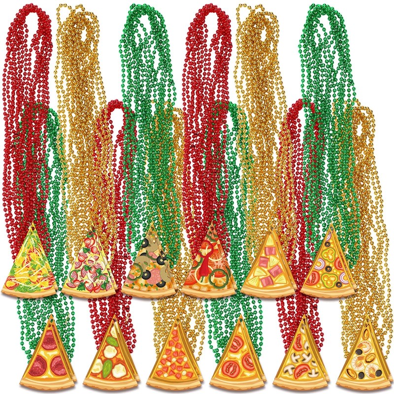 - Pizza Party Favors: including 24 pieces of pizza beaded necklaces, ideal for small to medium events; 2 for each style; These abstract designs not only bring fun and humor to your party but also adorns your gathering with style; Dive into the pizza party spirit with these unique party necklaces