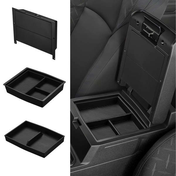- Invisible Storage Box & Double-Layered Organization: 2X layer design offers precise partitioned storage for small items like phones and keys, keeping your center console organizer and easy to maintain. The hidden storage box features a quick-release buckle for one-handed access, ensuring cash and documents remain out of sight, maintaining complete privacy while driving.