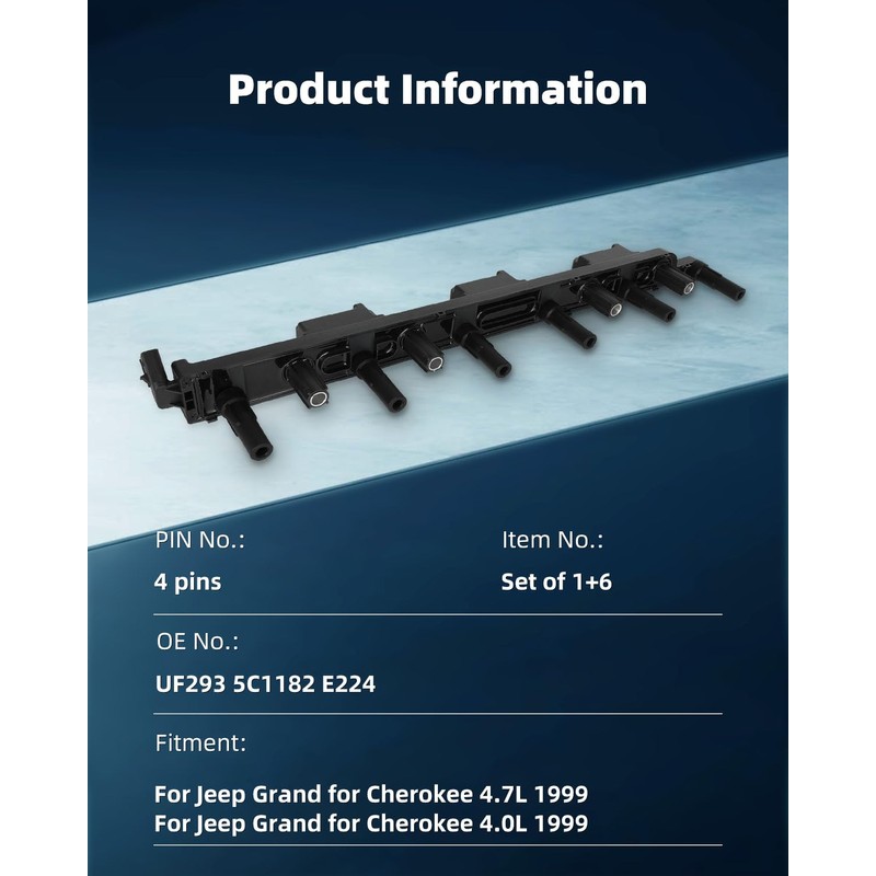 - [Vehicle Fitment]: Ignition Coil Packs Compatible for Jeep Grand for Cherokee WJ 1999 L6 4.0L