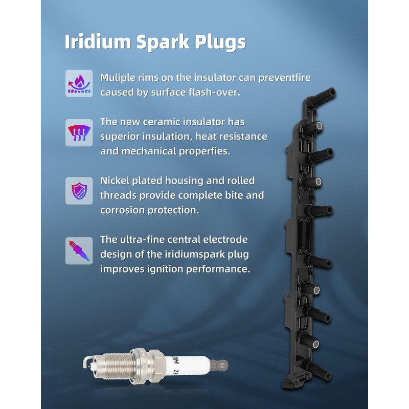 - [Vehicle Accessories]: 1 ignition coils with 4 iridium Spark Plugs1 ignition coils with 6 iridium Spark Plugs,enough to meet your daily needs. Easy to install and assemble,can directly replace the old or damaged ignition coil.