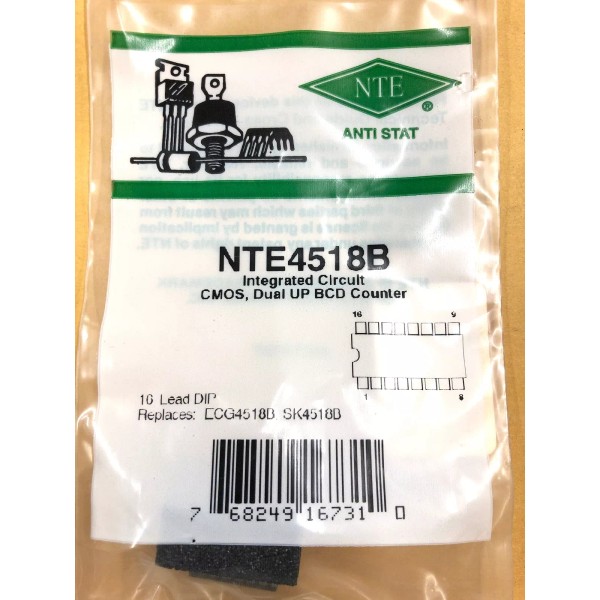 NTE4518B, CMOS BCD Dual Up Counter~ 16 Pin DIP (ECG4518B)