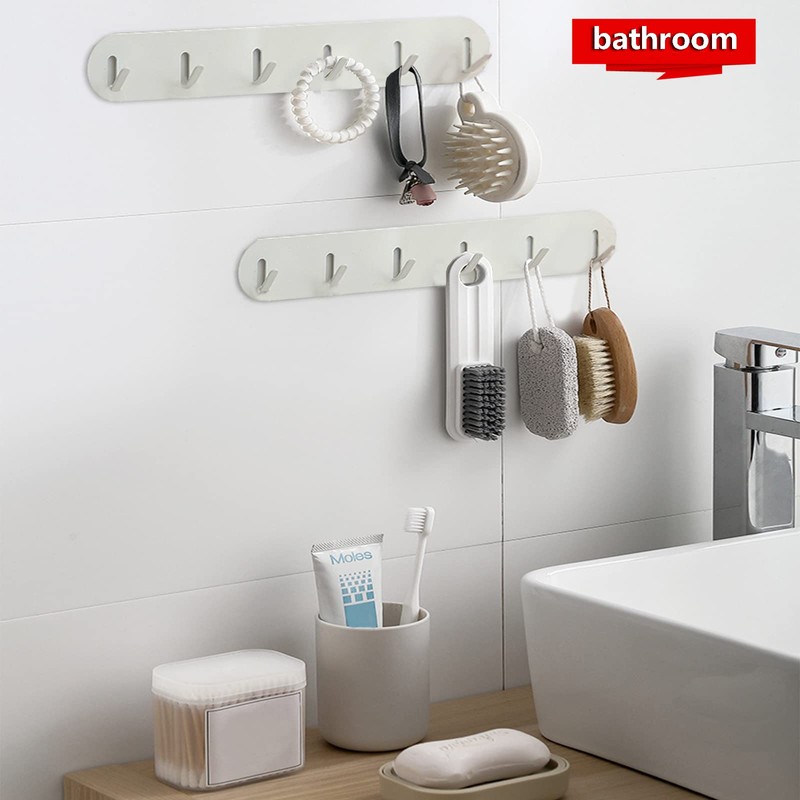 Echehi 6 Hooks 2 Way Installation Key Hook, Coat Hook, Bathroom Hook, Kitchen Hook, Perfect for Organizing Small Items Behind The Door. White