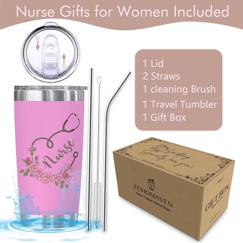 EchoMaven Nurse Gifts for Women, Nurses Week Gifts, Ideal for Christmas Birthday, 20oz Stainless Steel Double Wall Vacuum Insulated Tumbler with Lid Straws, Keeps Hot and Cold