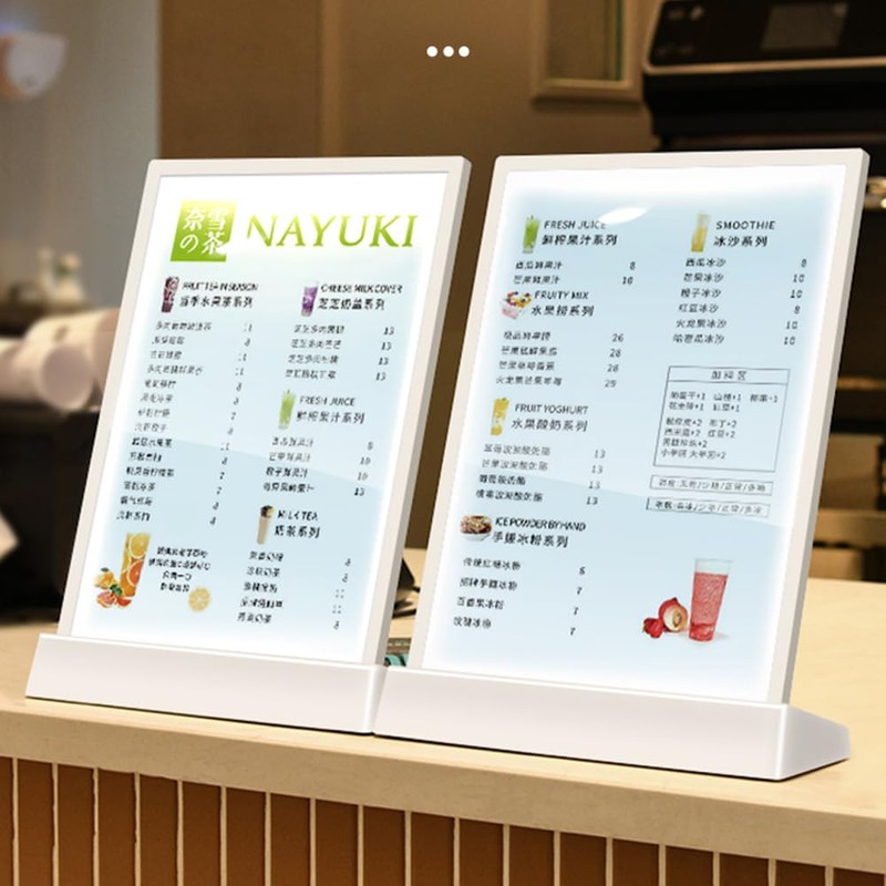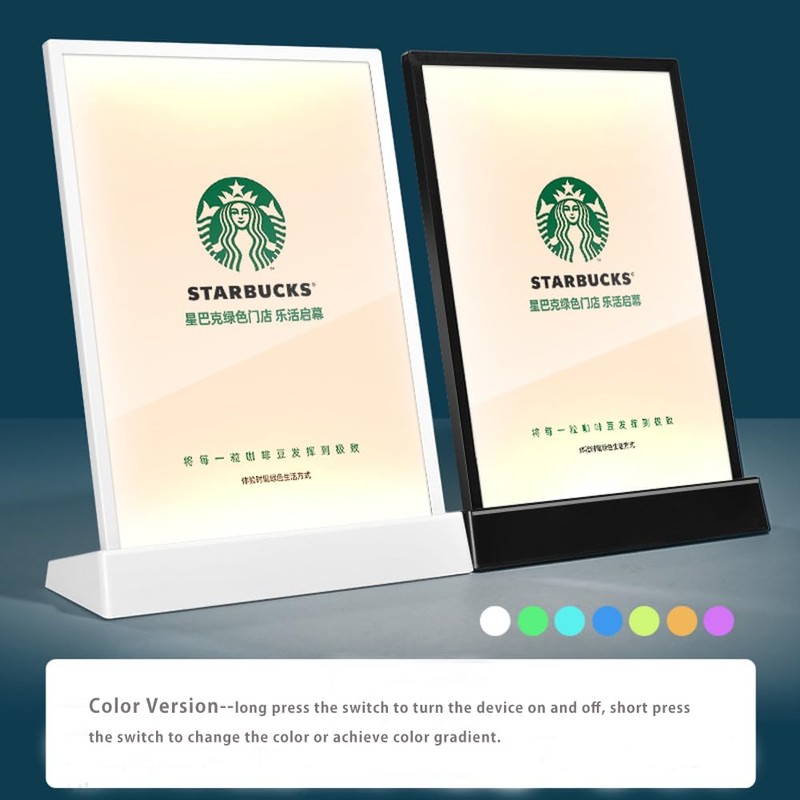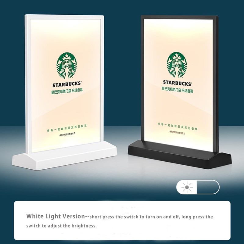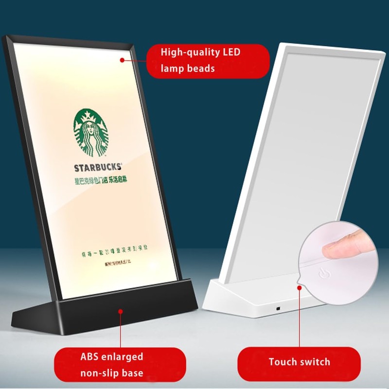 ECKEK LED Sign Holder Clear Sign Holder with LED Light Box, Table Menu Display Stand LED Menu Board A4 (white light version T shape with black frame)