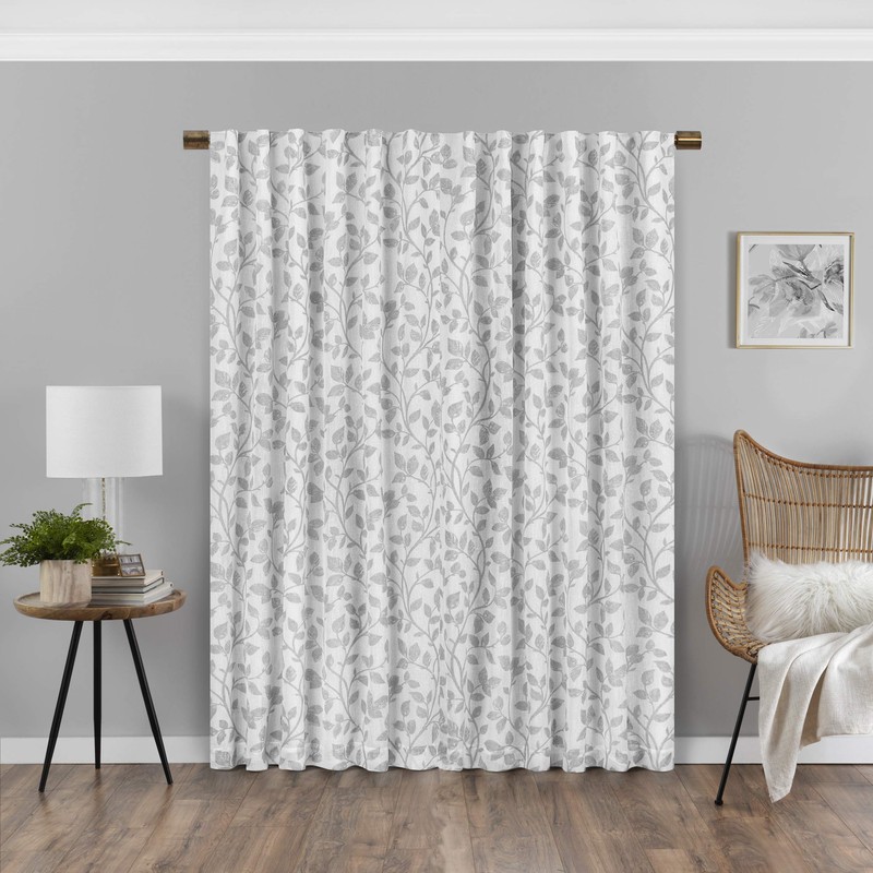 Eclipse Nora Botanical Rod Pocket Curtains for Bedroom, Single Panel, 50 in x 95 in, White