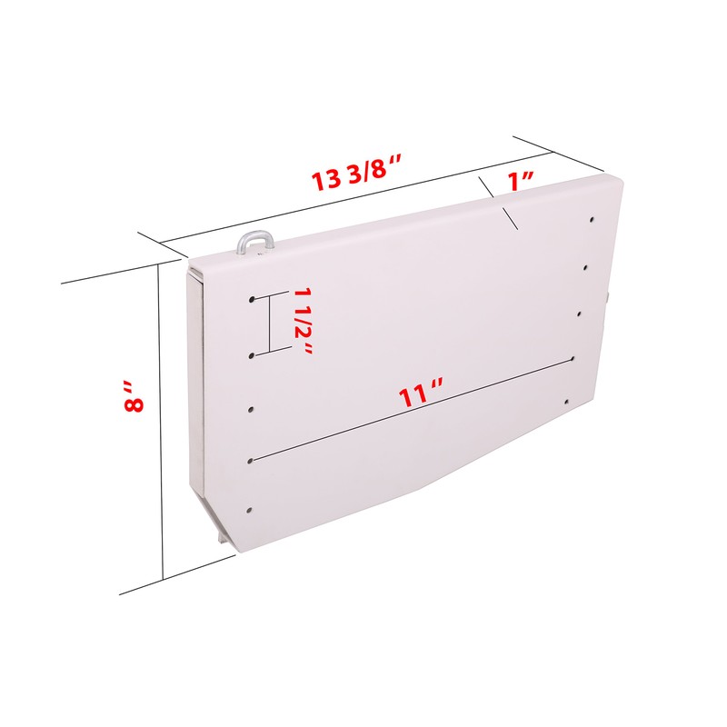 Specifications: Overall dimensions: 13 3/8 '' x 8'' x 1 3/8''(the thickness of the housing +the plate). Color: White. Fits King size.(It may fit Queen size,just reduce the springs in the housing if they are too strong) Package included: 2x Springs Hinges. 2x Legs. 2x Legs Mount. 1x Hex tool and Screws.