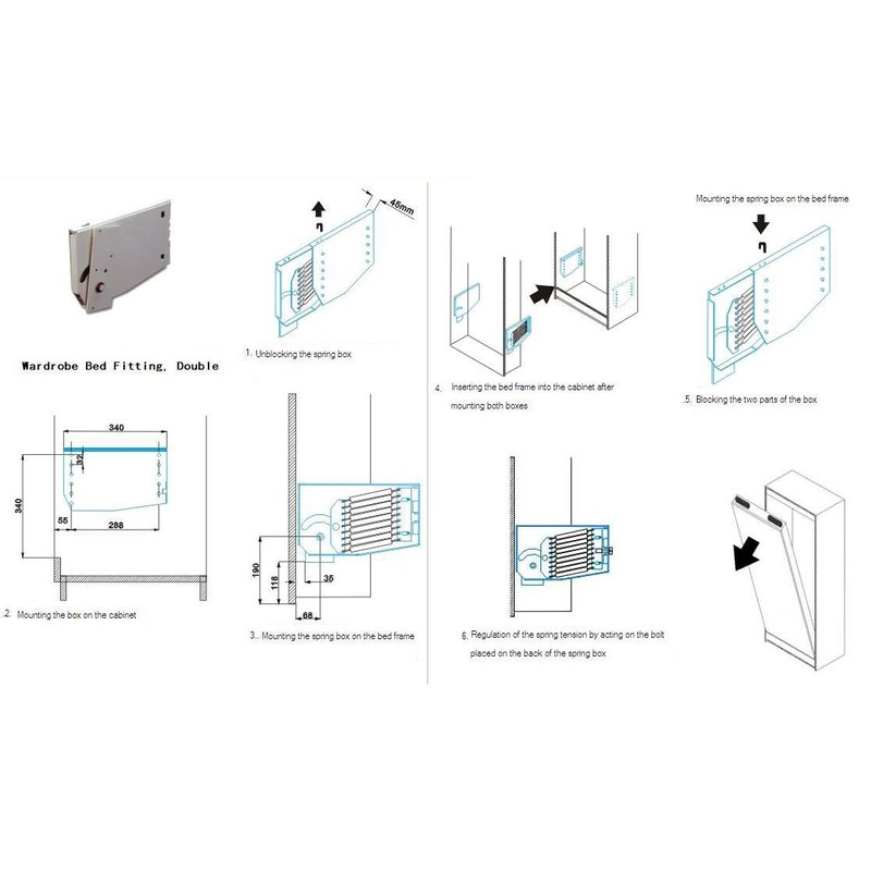 • This is the DIY hardware kit only, There is no installation how to build the bed box(Customers will design the different size of the bed box,the thickness of the mattresses are different,bed box and mattress are not included,Reference mounting installation is included