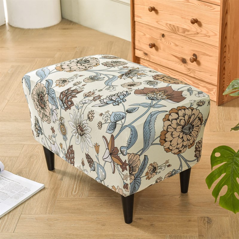 - HIGH QUALITY MATERIAL:Eco-Ancheng floral printed ottoman covers are super soft and comfortable,natural environmental and ECO friendly.The material is made of polyester and spandex.The stretchable fabric makes ottoman slipcover more soft to touch and fit the ottoman perfectly.Using stretchable ottoman cover can update the look of your ottoman and match the style of your living room.