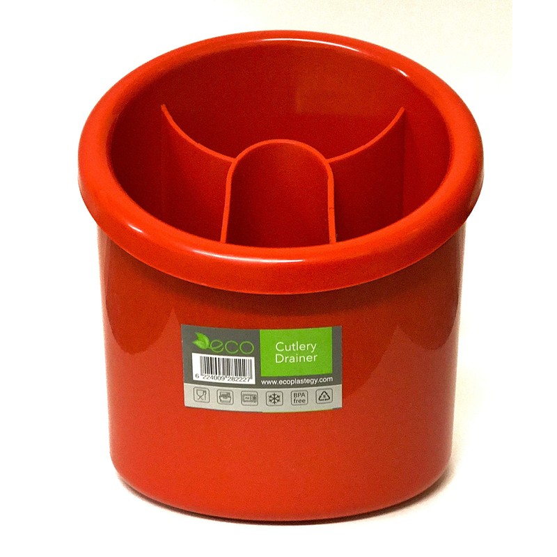 ECO Cutlery Utensil Drainer with 4 Compartments, 15×14×18 cm (Red)