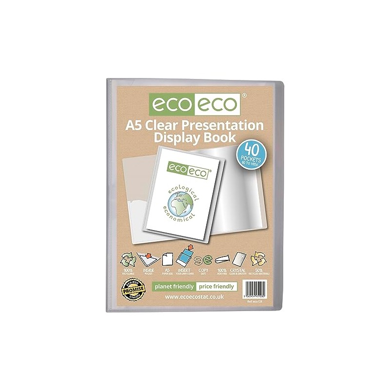 eco-eco Eco128 A5 50% Recycled 40 Pocket Clear Presentation Book with Plastic...