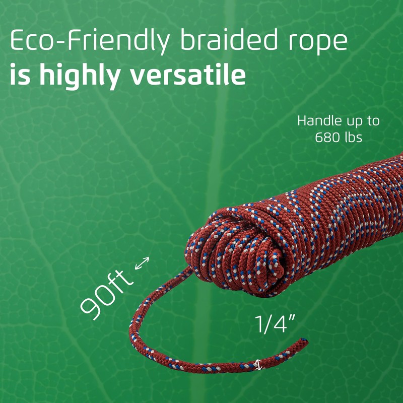 - 【RESISTANT BRAIDED ROPE MADE TO LAST】Our braided ropes are strategically designed for durability and longevity. Made with great care, it's built to withstand the toughest challenges, being able to handle up to 680 lbs. Get ready to confidently tackle any task with this reliable rope that's built to go the distance.