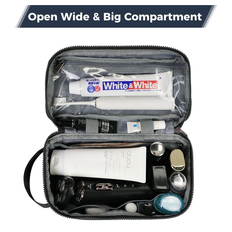 - Compact design and organised: the main compartment offers plenty of space for large items such as shampoos, shaving foam and skin care products. 2 mesh bags for your travel size toiletries, cotton buds and plasters, etc., and 1 zip pocket for your personal items. Keep your items organised and as you put them in the suitcase.