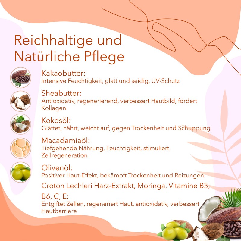- 🌿 Body Lotion Dry Skin Revolution: Our body butter absorbs quickly and leaves no residue. Perfect for everyday use, it offers a comprehensive solution for very dry skin.