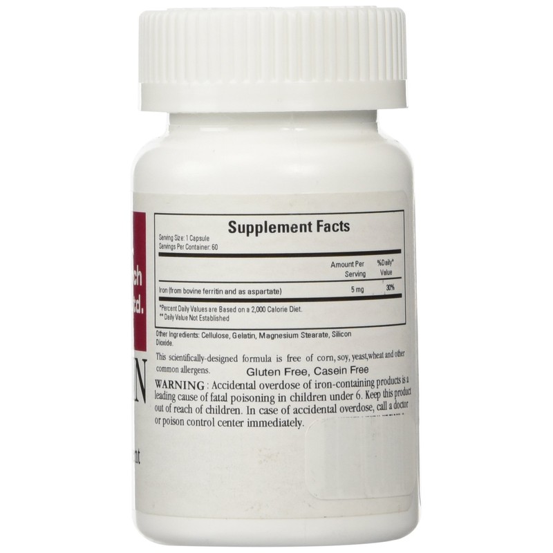 Ecological Formulasandrsquo; Ferritin Bioavailable Iron Capsules contain a powerful formula that delivers 5 milligrams of ferritinandsbquo; the key protein responsible for iron storage in your body. This supplement also provides ironandsbquo; the essential mineralandsbquo; in its most bioavailable form for easier absorption. The ferritin in this exclusive formula is a natural derivative of bovine spleen. Unlike many other iron supplementsandsbquo; Ferritin Bioavailable Iron doesnandrsquo;t cause negative side effectsandsbquo; such as nausea and GI tract upset.