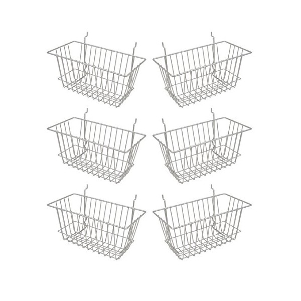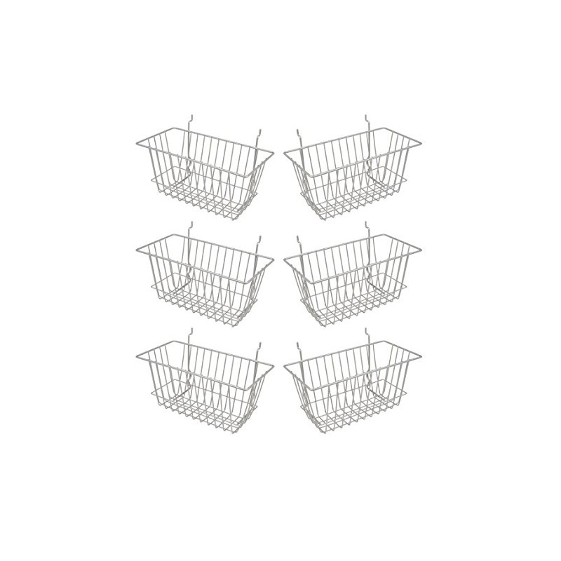 - DESCRIPTION: Comes in a 6 pack of Epoxy Chrome multi-fit wired slatwall baskets. Rectangular shape, non-tapered design offers additional space as well as an attractive option for storage.
