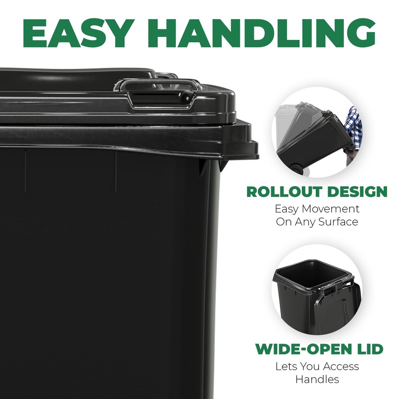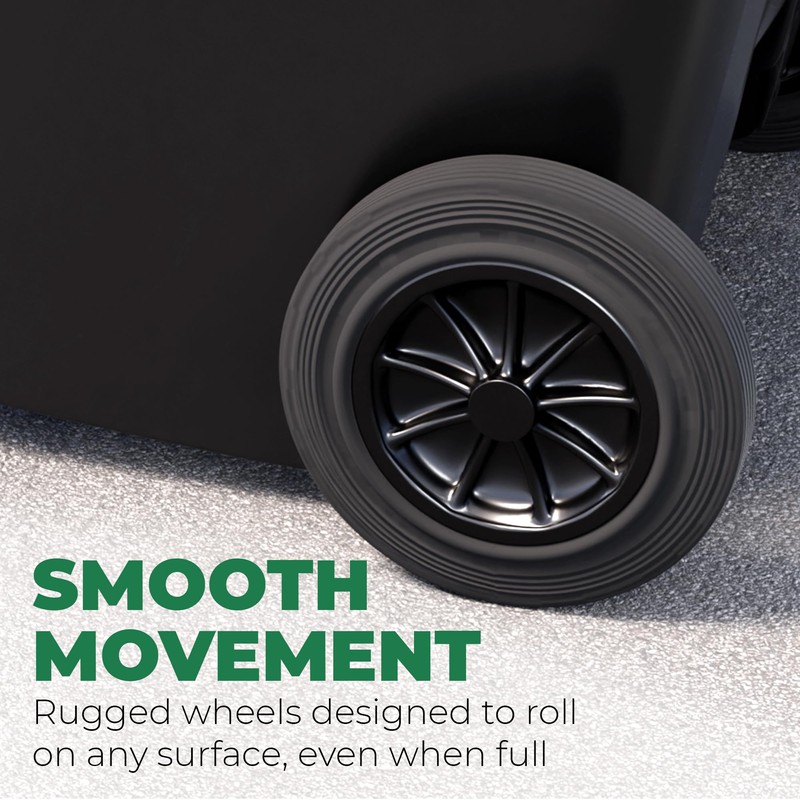 - Effortless Mobility - Our commercial trash cans have rugged wheels and sturdy handles. This outdoor trash can is easy to relocate, whether rolling over rough terrain or gliding across smooth surfaces.