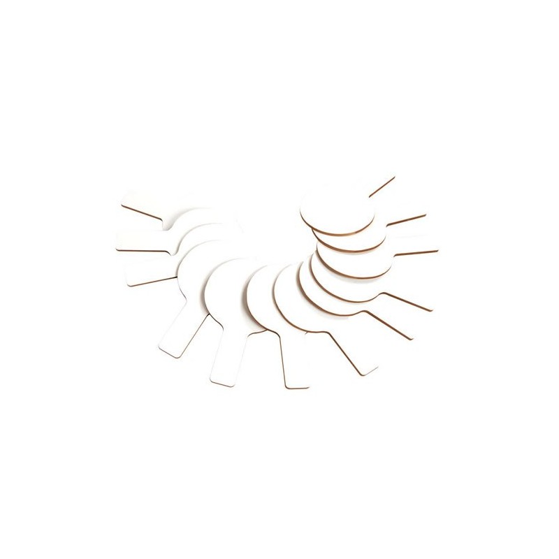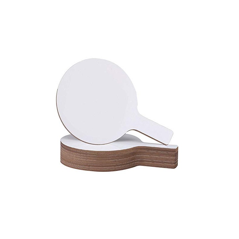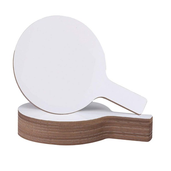 Grades K & up. The lightweight Mini Dry Erase Answer Paddles feature a rounded shape, easy grip handle, and a chip-resistant hardboard backing. These dry erase paddles are easy to use and wipe clean to erase. Ideal for monitoring student understanding at a glance and promoting class engagement. Dry erase panel is on one side only. Each paddle measures 5" x 9". Included: 12 Mini Dry Erase Answer Paddles.