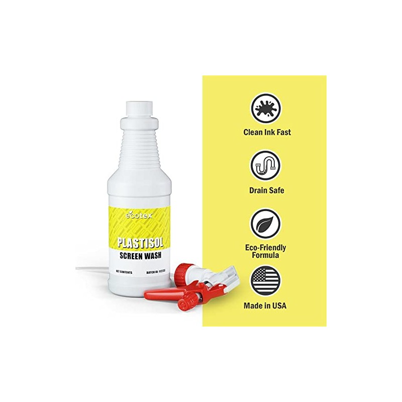 Ecotex PLASTISOL SCREEN WASH is a soy-based environmentally friendly ink degradent / ink cleaner. Use it at the sink, designed specifically to quickly dissolve Plastisol & UV ink. This product is ready to use, Emulsion and Capillary stencil safe.