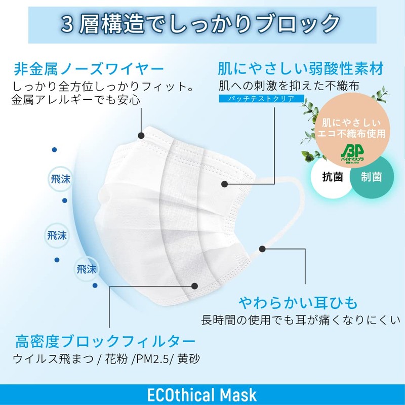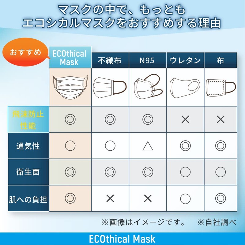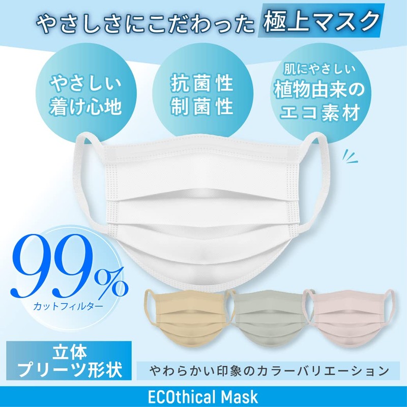 植物由来の不織布を使用したECOthical Maskは、肌にやさしいマスクです。
