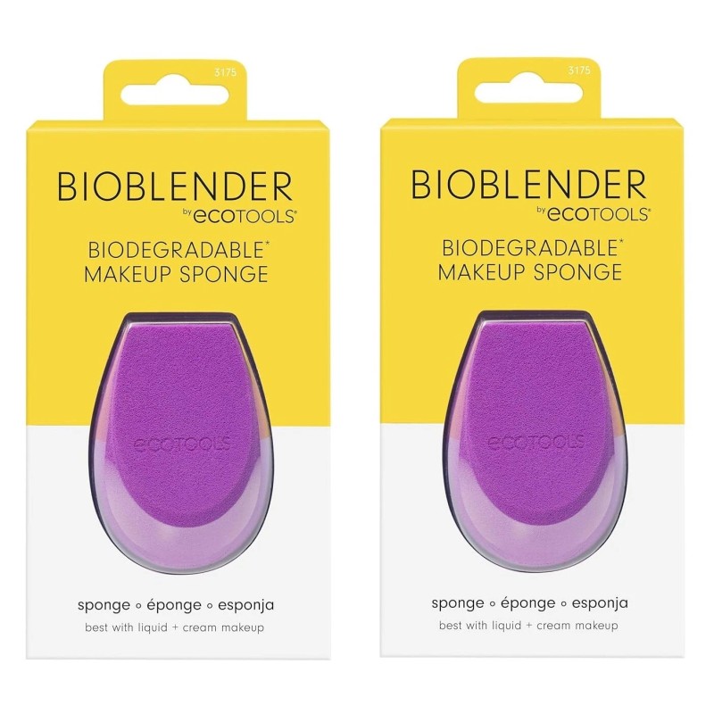 Pack of 2 EcoTools Bioblender Makeup Sponge, Compostable Makeup Blending Sponge, Eco-Friendly, For Liquid & Cream Foundation & Base Coverage, Cruelty Free