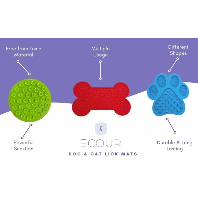Ecour Lick Mat For Dogs with Solid Suction Perfect for Small and Large Dog Slow Feeder and Anxiety Reducer, 3 Styles of Shapes Make Easier Dog Lick Pad for Food, Peanut Butter and Bathing.
