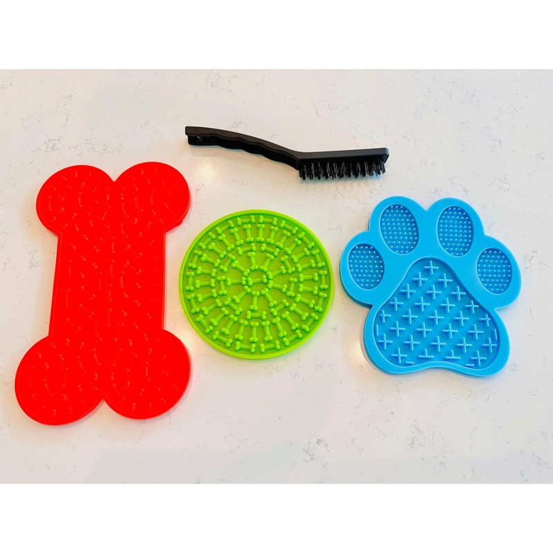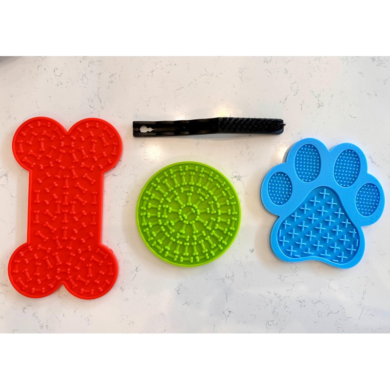 ECOUR Licking mat for Dogs & Cats 3 Pack, Dog Slow Feeder, Lick mat for Dogs with Suction Cups, Perfect for Yogurt Peanut Butter Treat, Boredom Anxiety Reducer, with Cleaning Brush