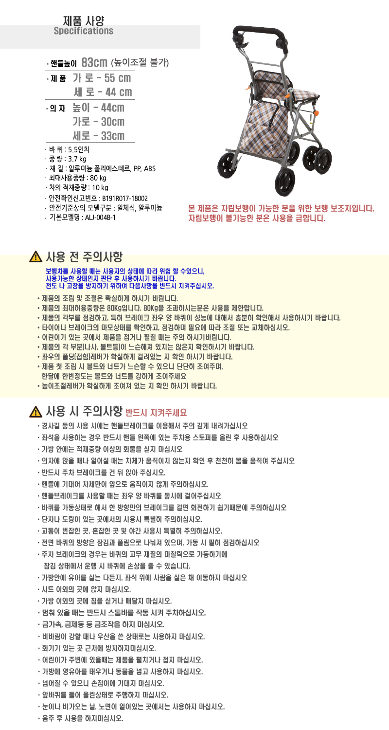 Ecowell Elderly Walker Walker Silver Car ALJ004B-1 / 에코웰 노인보행기 보행보조기 실버카 ALJ004B-1
