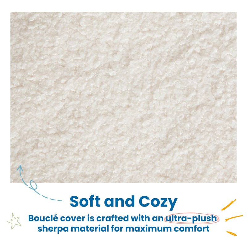 - Bouclé Cushion: The machine washable plush seat cover provides extra comfort while maintaining the ergonomic features of the rocker; to remove, simply unfasten the hook and loop closure