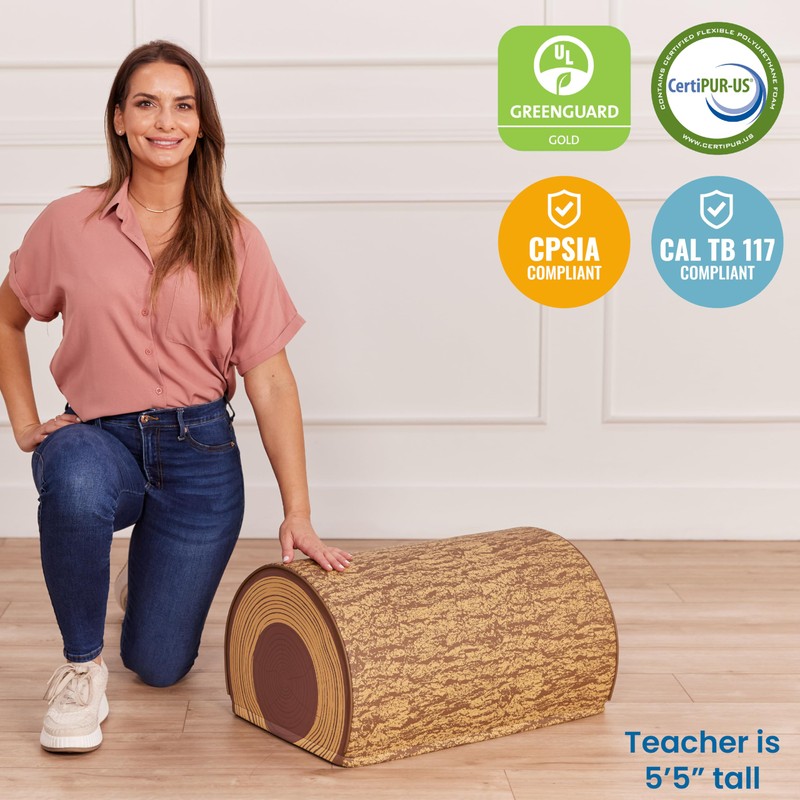 - Flexible Seating: Log cushions provide a designated place during circle time, storytime, or music class; encourage collaboration by building seating pods, reading circles, or creative play zones