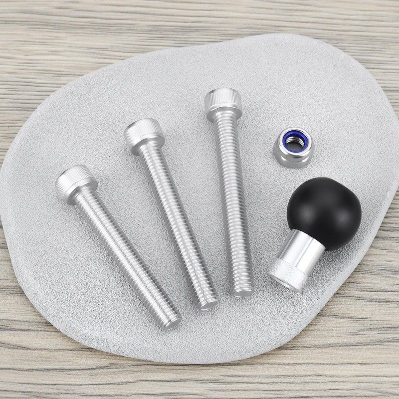 -Includes the complete hardware with ball base, three M8 screws (55mm, 60mm, 65mm) and an M8 nut for easy installation.