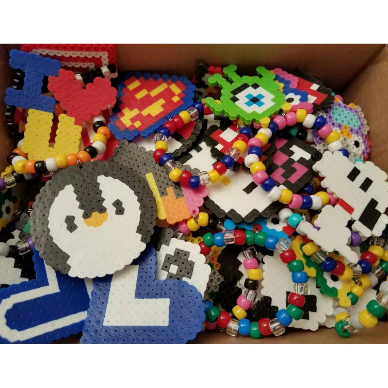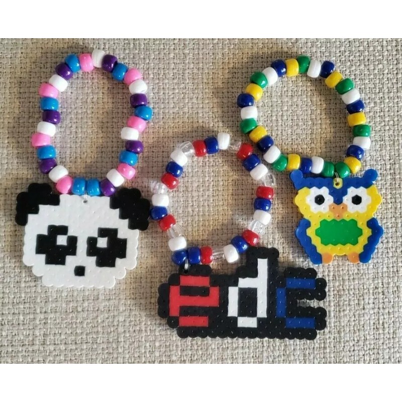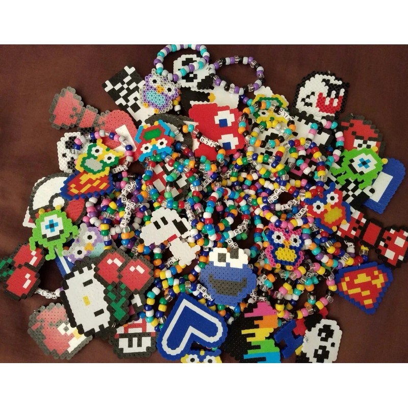 You get 20 Random Worded Kandi and 3 cute perler bracelets with your favorite characters!