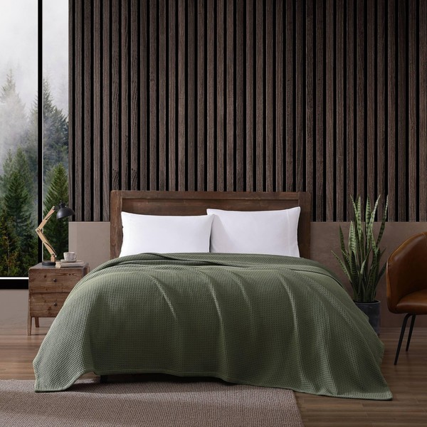 Eddie Bauer Blanket Soft Waffle Weave Bedding, Medium Weight Bedroom Decor, Softens Every Wash, King, Green