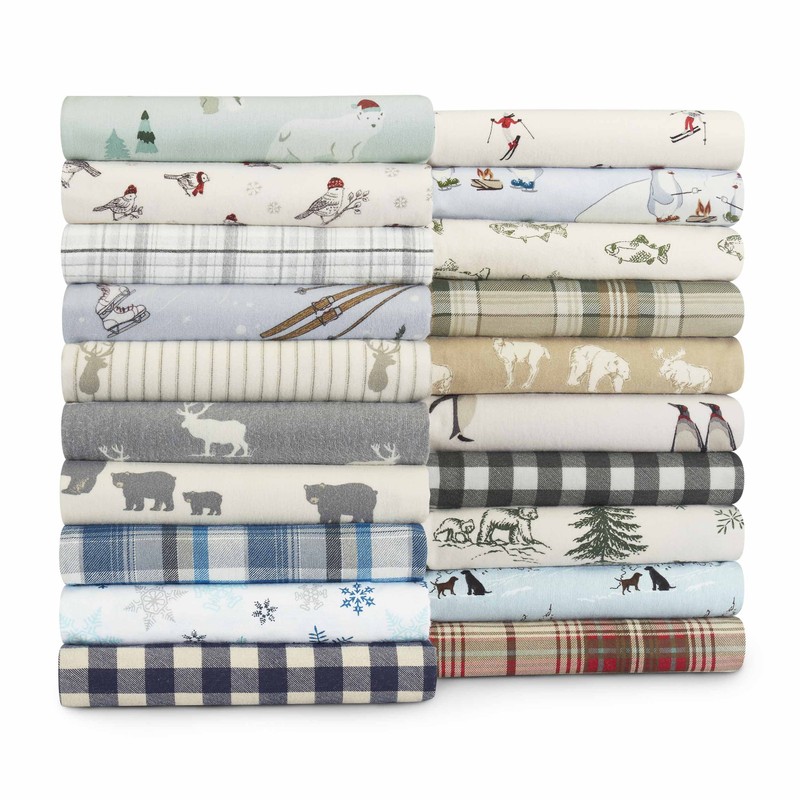 Eddie Bauer flannel sheet sets feature great fall colors and prints for your bedroom. Flannel is brushed for added softness and preshrunk. Stay warm and in style this fall with these beautiful flannel sheet sets. Coordinate with Eddie Bauer quilts, comforters, blankets and throws to complete the look. You will love the high quality of these sheets, they are super soft and cozy. The prints are all iconic Eddie Bauer designs. Mix and match to create your own unique look. These also make perfect gifts for the holidays.