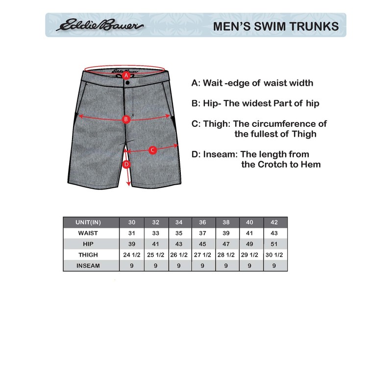 Eddie Bauer Mens Hybrid SPF 50+ Swim Trunks - 10" Inseam, Chambray, 34